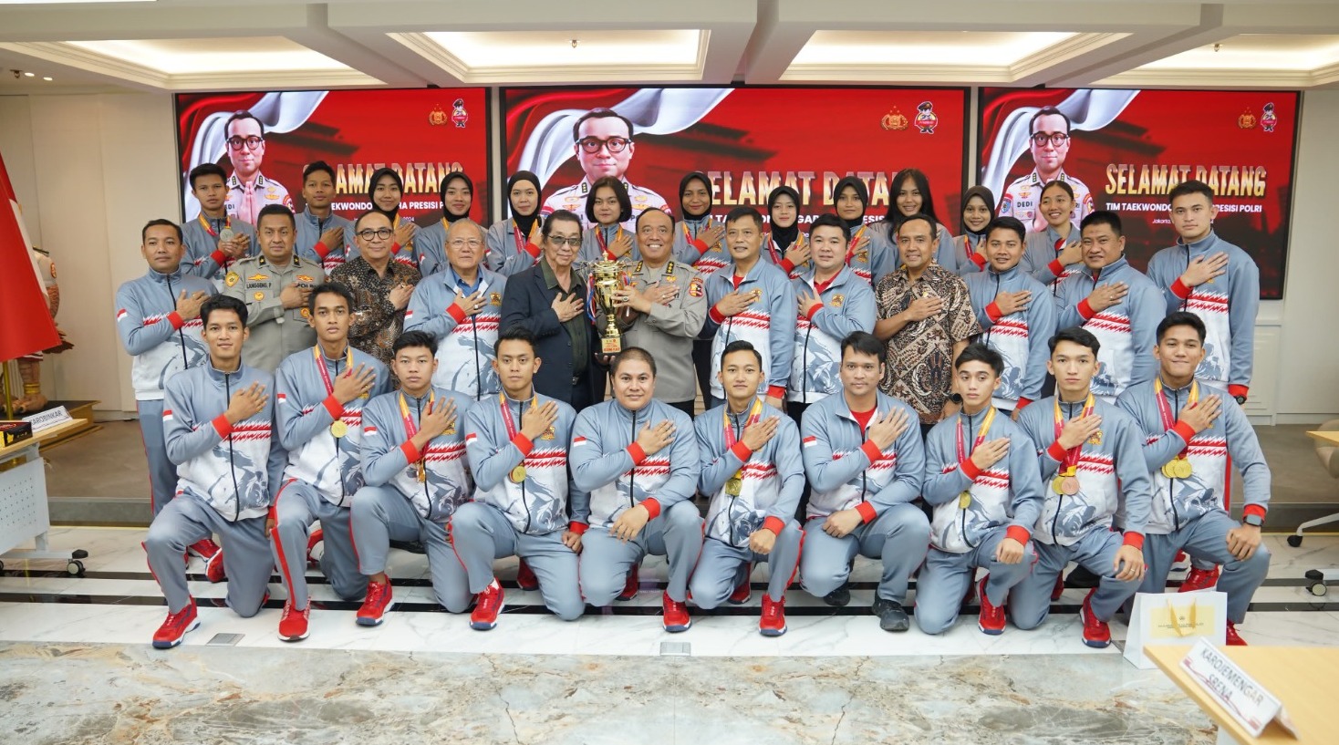 Komjen Pol Dedi memberi selamat atas capaian tim Taekwondo Garbha Presisi yang berhasil menjadi juara umum ke 2 di kejuaraan yang diikuti Lembaga kepolisian dari 19 negara.