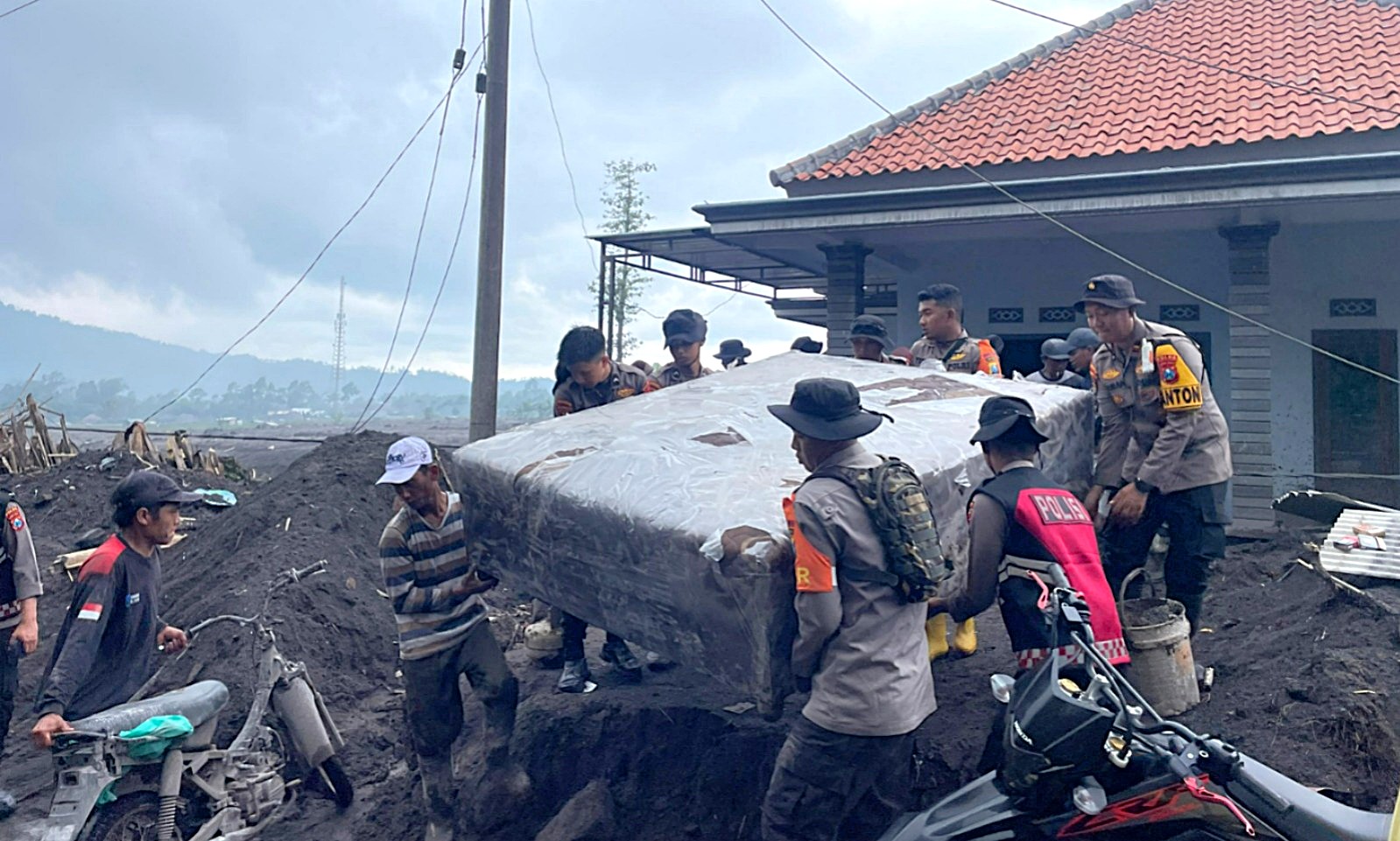 Satbrimob Polda Jawa Timur Perkuat Operasi Kemanusiaan Pasca Erupsi Semeru