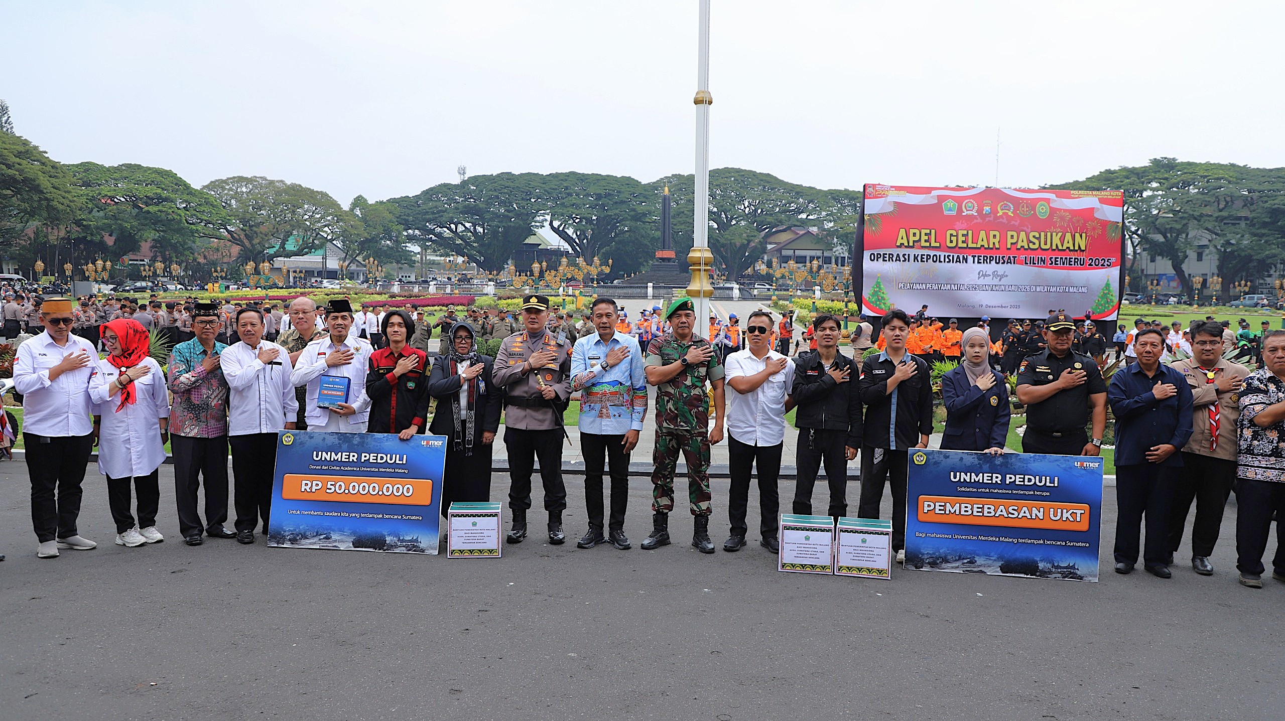 Sebagai wujud kepedulian sosial dan solidaritas kebangsaan, ketiga Pimpinan Apel menyerahkan bantuan dari Pemerintah Kota Malang kepada perwakilan mahasiswa asal daerah terdampak bencana di Aceh dan Sumatera.