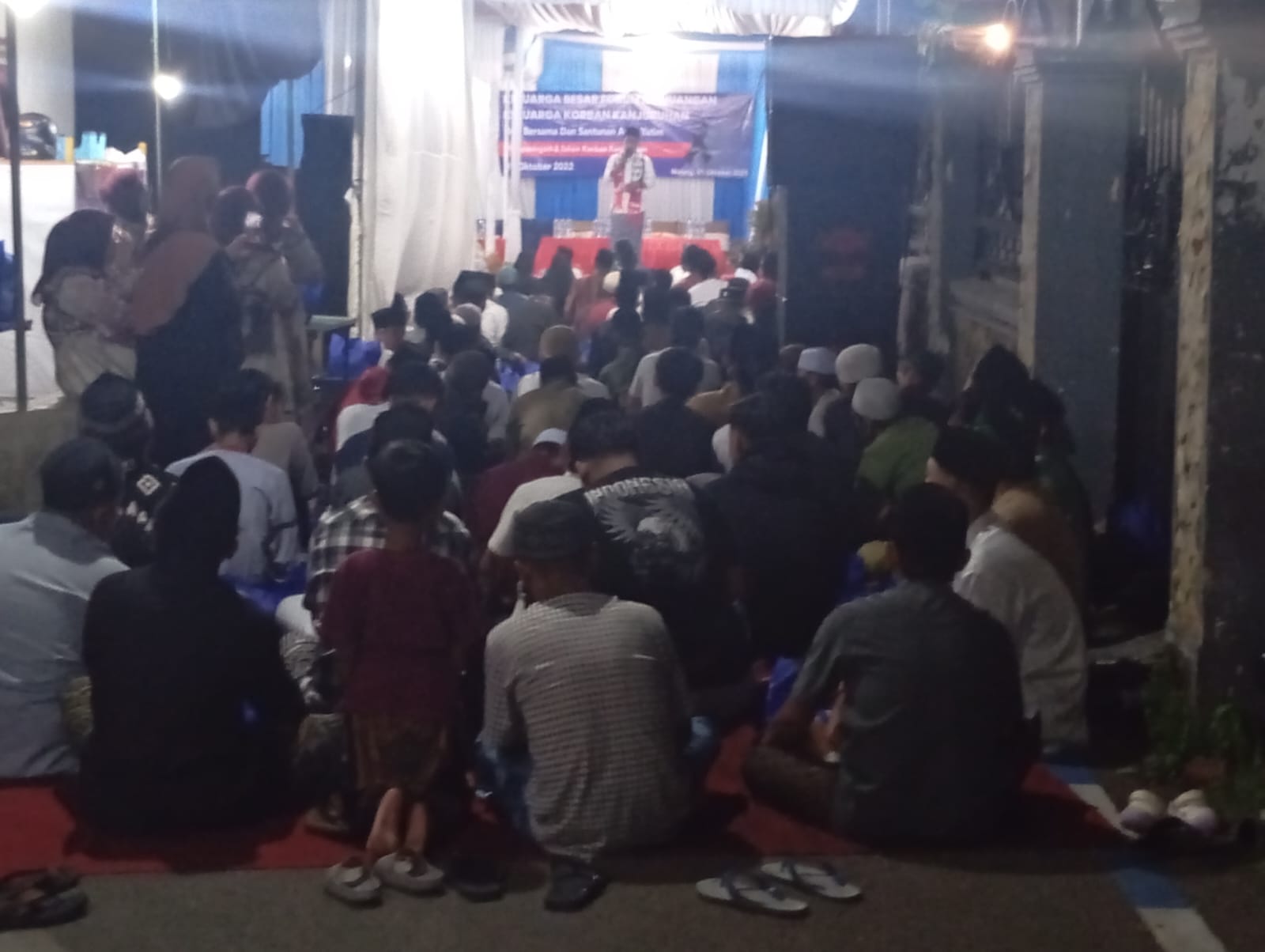 Doa bersama dan santunan anak Yatim dilaksanakan dikediaman keluarga Bapak Yn dan Ibu Ast keduanya adalah orang tua dari almarhumah SL yang menjadi salah satu korban yang merupakan warga Jl Gadang, Kelurahan Gadang, Kecamatan Sukun, Kota Malang.