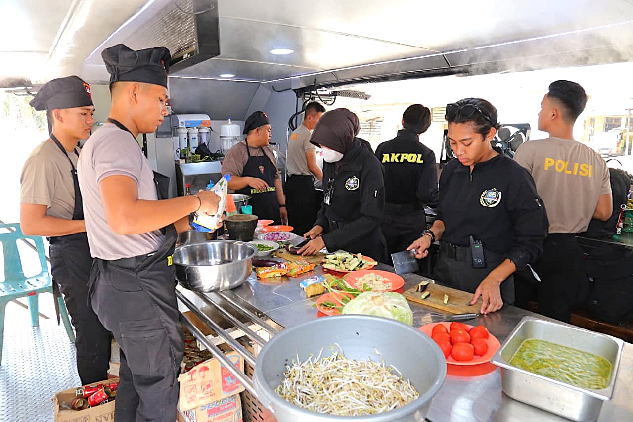 Taruna Tingkat III Akademi Kepolisian, Intan Gustava Rongrean, menyampaikan bahwa dapur lapangan tersebut menyiapkan berbagai menu makanan bergizi untuk masyarakat.