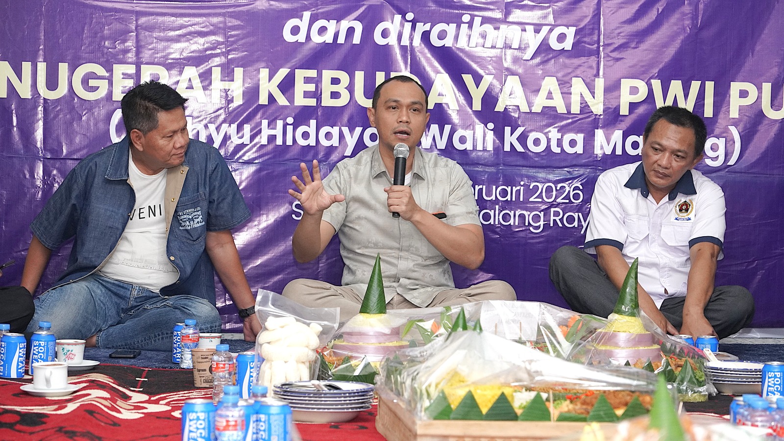 Kombes Putu Kholis juga menerima potongan pertama tumpeng Tasyakuran HPN 2026 dan HUT PWI Malang Raya dari Wali Kota Malang Wahyu Hidayat.