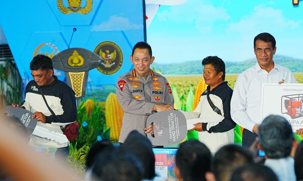 BEKASI – Kapolri Listyo Sigit Prabowo menyalurkan bantuan alat dan mesin pertanian (alsintan) kepada kelompok tani dalam rangkaian kegiatan panen raya jagung serentak kuartal IV yang digelar di Kabupaten Bekasi, Jawa Barat. Total sebanyak empat unit alsintan diserahkan kepada kelompok tani penerima manfaat.