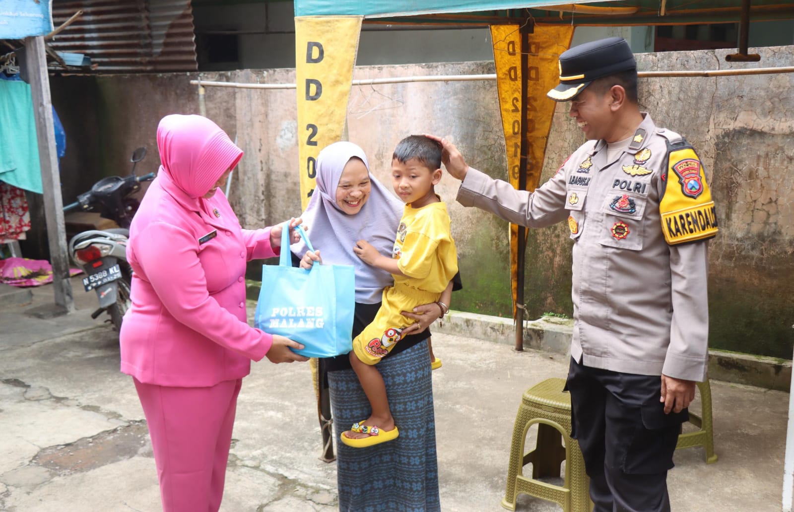MALANG – Kepolisian Resor Malang, Polda Jawa Timur, membagikan ratusan paket bantuan sembako kepada warga kurang mampu serta pencegahan stunting di Kabupaten Malang.