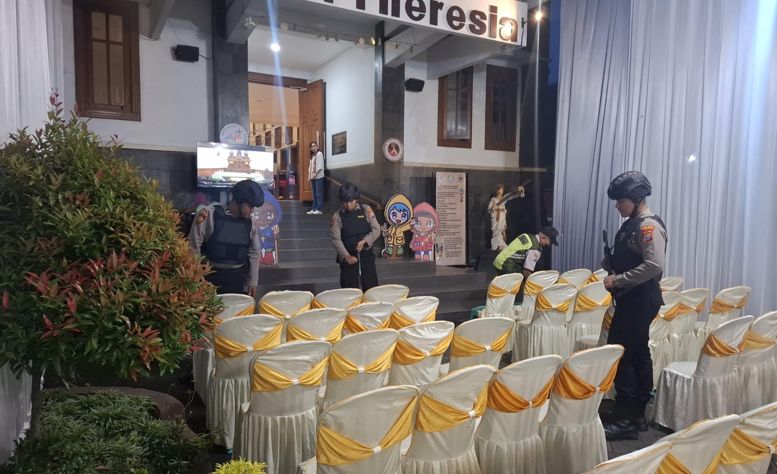 Ibadah berlangsung di gereja-gereja terdekat dengan khidmat dan penuh kedamaian.