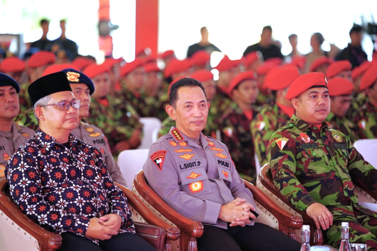 JABAR – Kapolri Jenderal Listyo Sigit Prabowo menghadiri kegiatan Retret Komando Kesiapsiagaan Angkatan Muda KOKAM Muhammadiyah di Satlat Brimob Korbrimob Polri, Cikeas, Bogor, Jawa Barat.