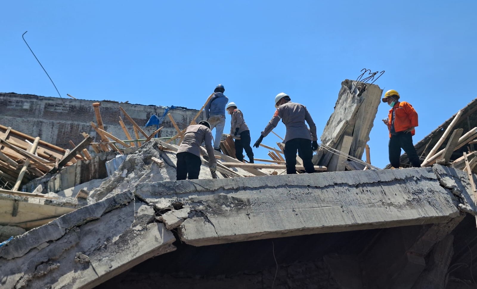 Sejak pagi hingga siang hari, petugas terus bekerja bergantian di area reruntuhan.