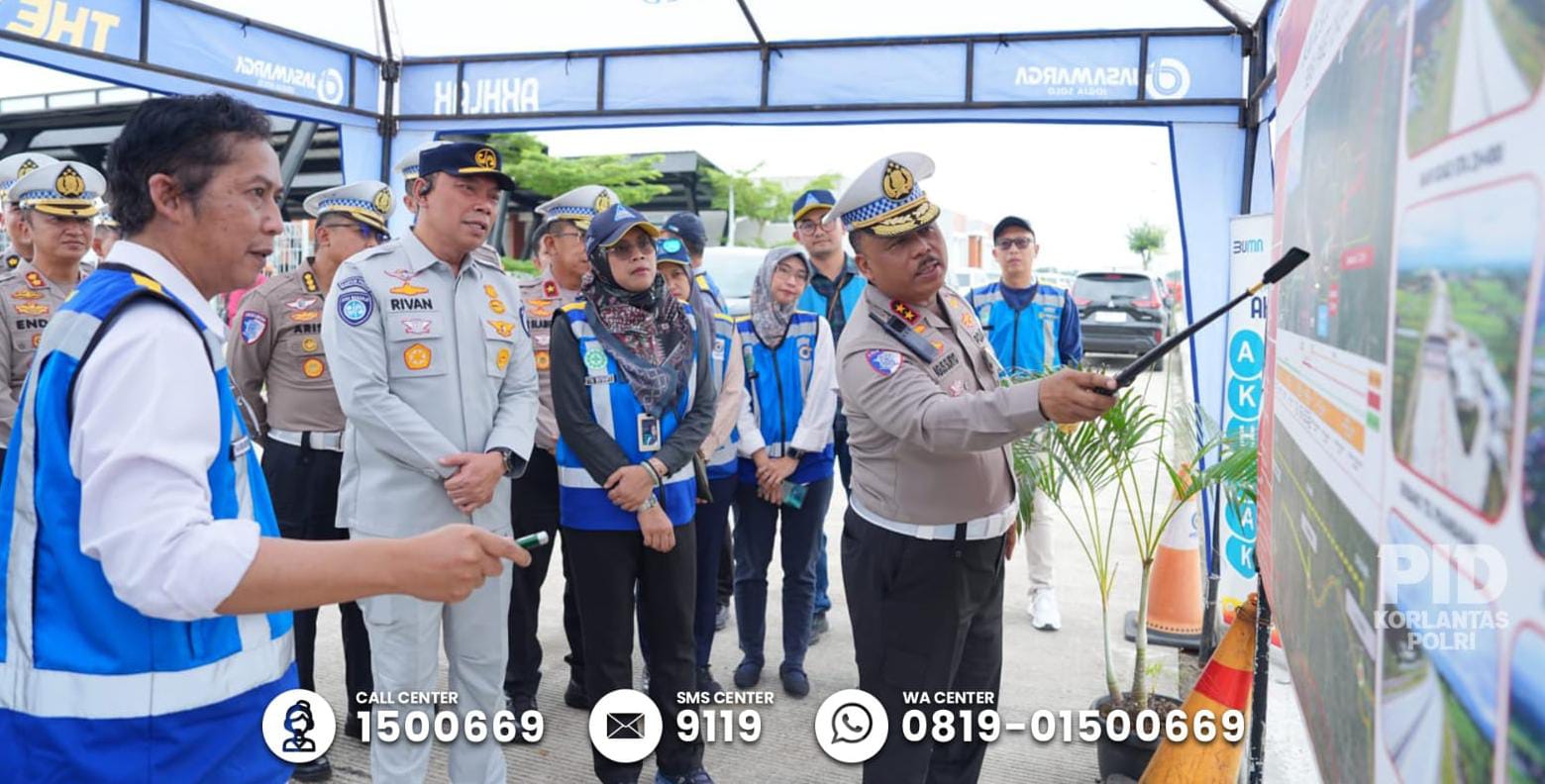 YOGYAKARTA – Kepala Korps Lalu lintas (Kakorlantas) Polri Irjen Pol Drs. Agus Suryonugroho, S.H., M.Hum., melakukan peninjauan Gerbang Tol Banyudono dan Exit Tol Taman Martani, Kamis (17/4/2025)